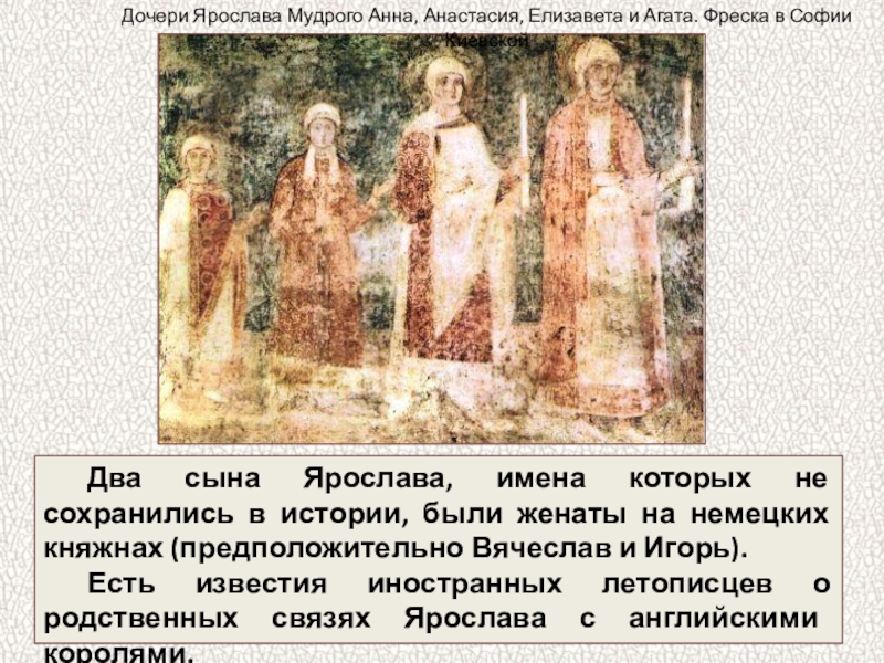 Дочери Ярослава Мудрого Анна, Анастасия, Елизавета и Агата. Фреска в Софии Киевской