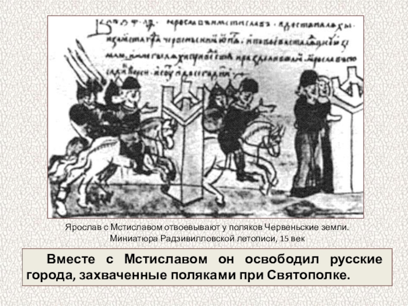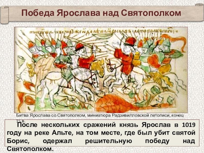 Битва Ярослава со Святополком, миниатюра Радзивилловской летописи, конец 15 в.