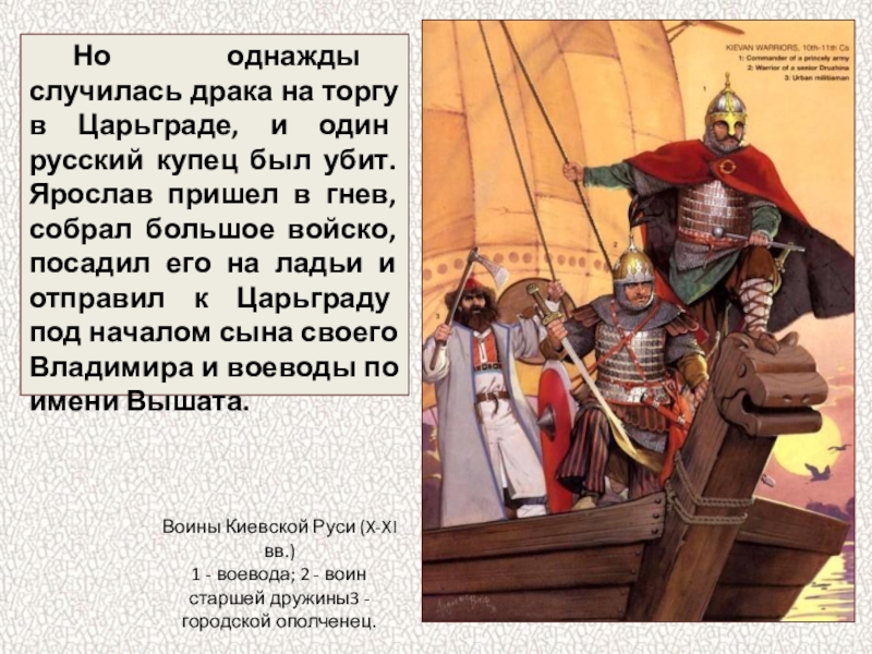 1 - воевода; 2 - воин старшей дружины3 - городской ополченец.