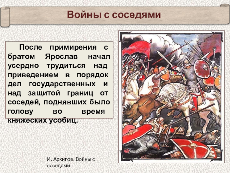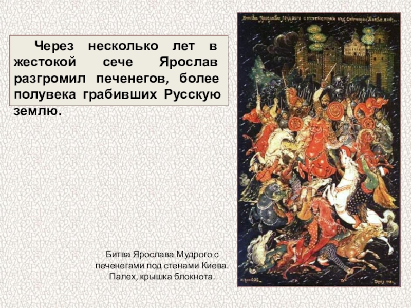 Битва Ярослава Мудрого с печенегами под стенами Киева. Палех, крышка блокнота.
