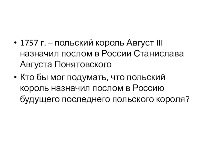 Слайд 21757 г. – польский король Август III назначил послом в России