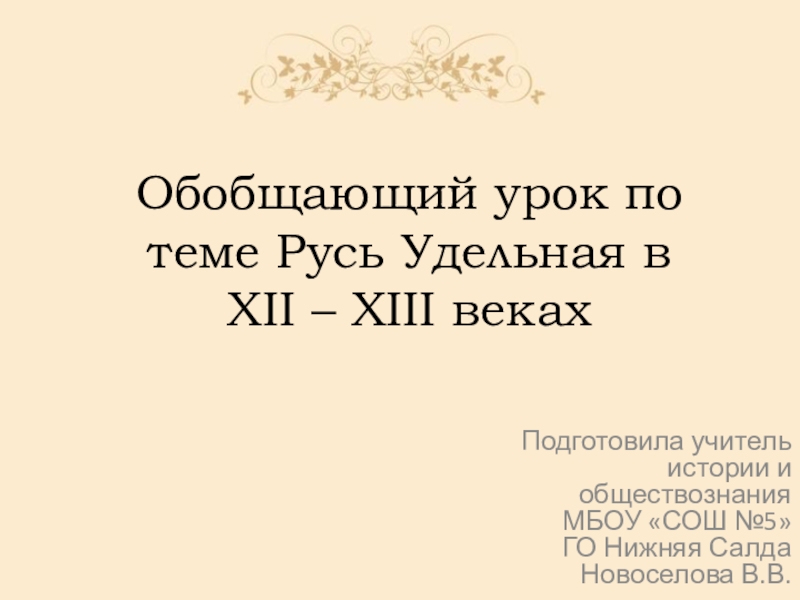 учитель истории и обществознания МБОУ «СОШ №5» ГО Нижняя Салда Новоселова В.В.