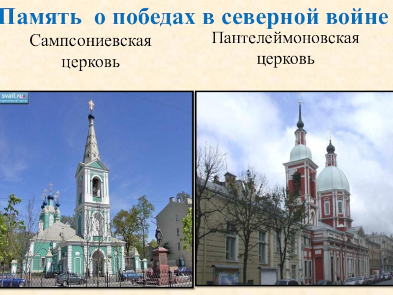 Память о победах в северной войне  Сампсониевская церковьПантелеймоновская церковь