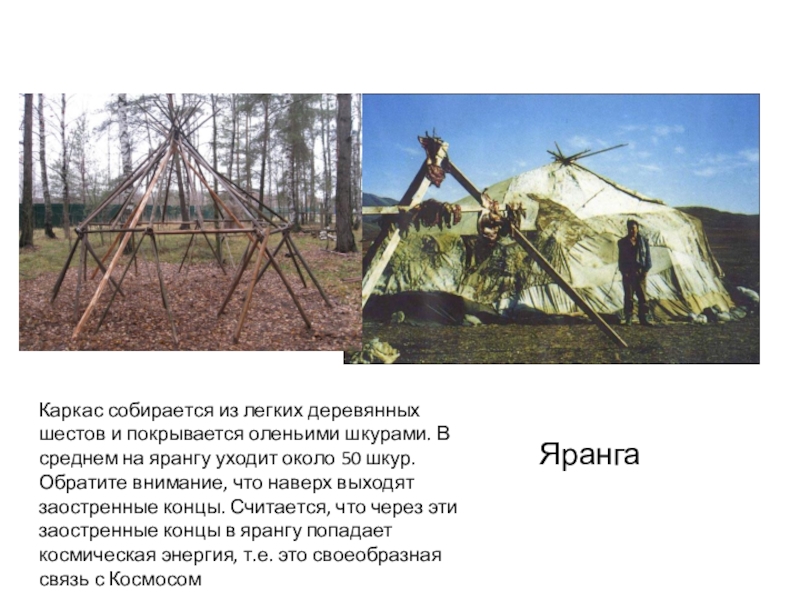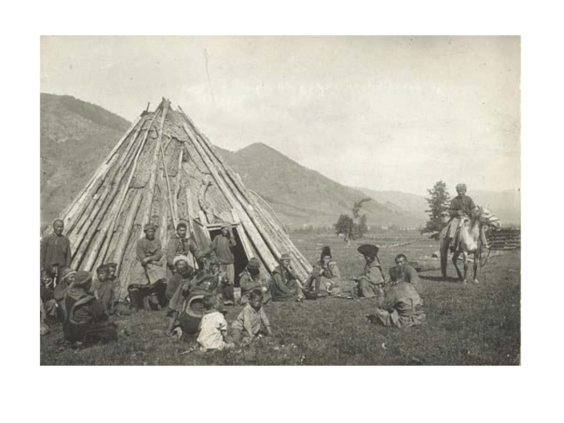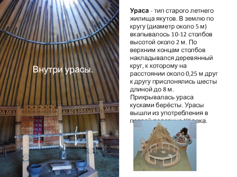 Слайд 19А вот якуты. Их летнее крытое берестой жилище, ураса, напоминало скорее