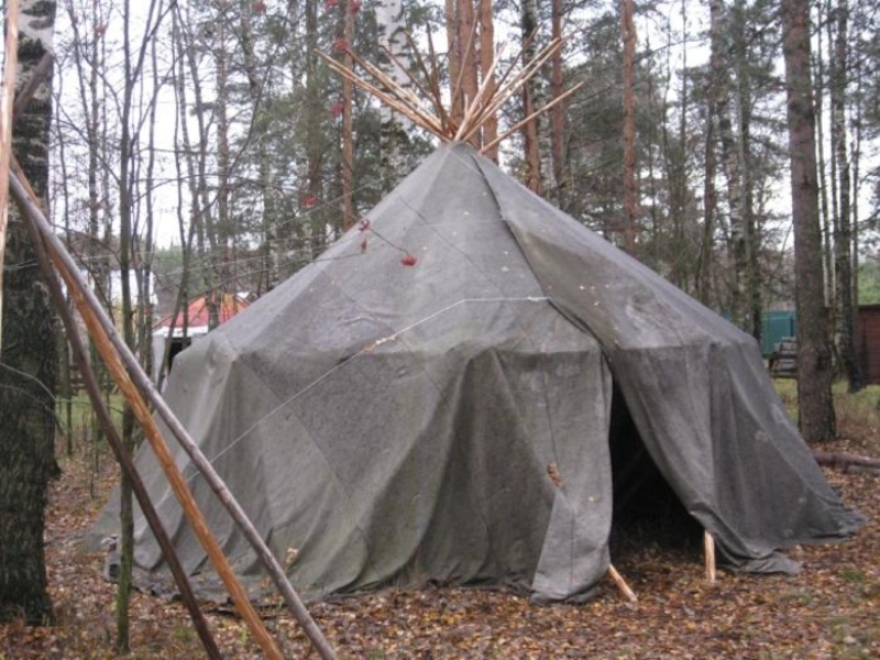 Каркас собирается из легких деревянных шестов и покрывается оленьими шкурами. В
