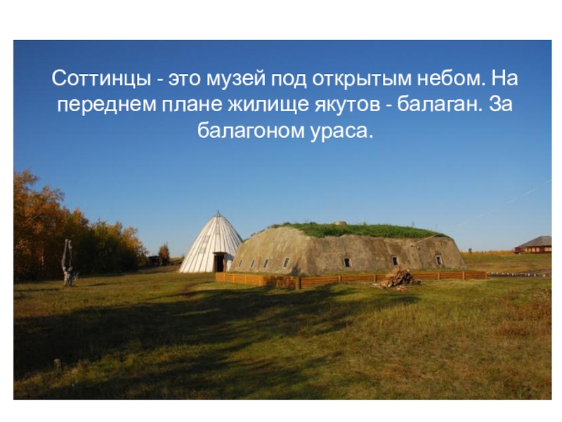 Слайд 21Соттинцы - это музей под открытым небом. На переднем плане жилище