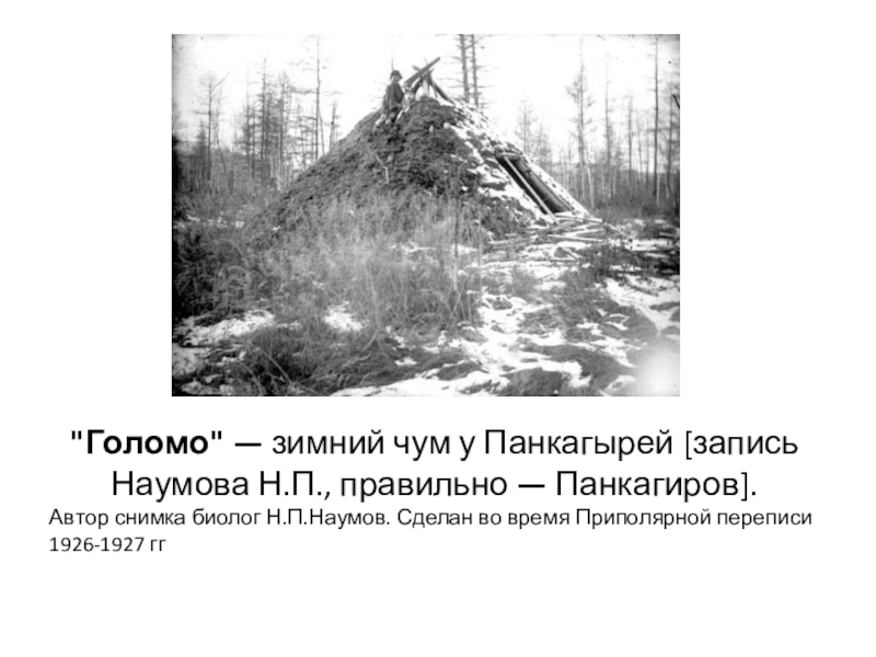 Слайд 46"Голомо" — зимний чум у Панкагырей [запись Наумова Н.П., правильно —