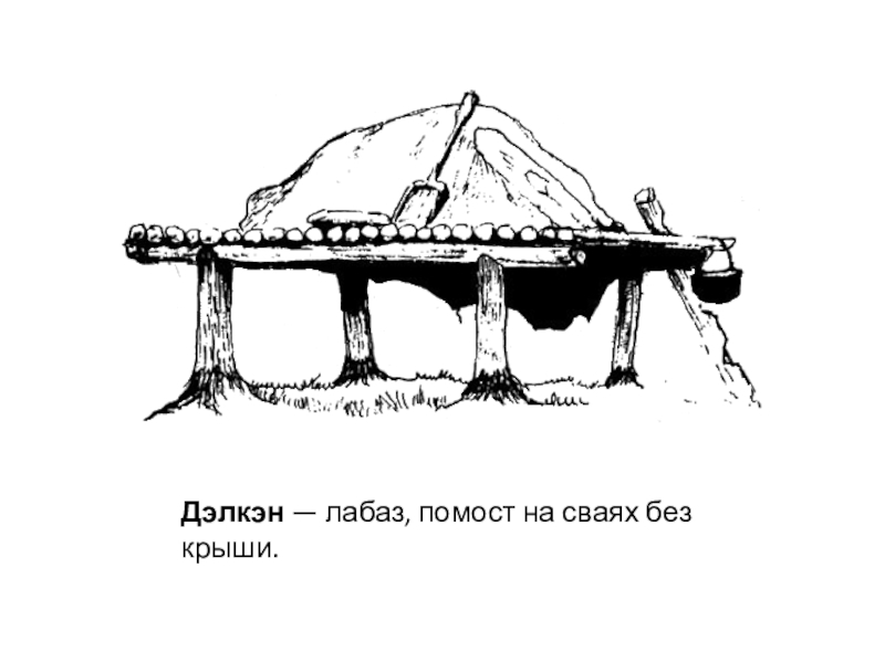 Слайд 49Дэлкэн — лабаз, помост на сваях без крыши.