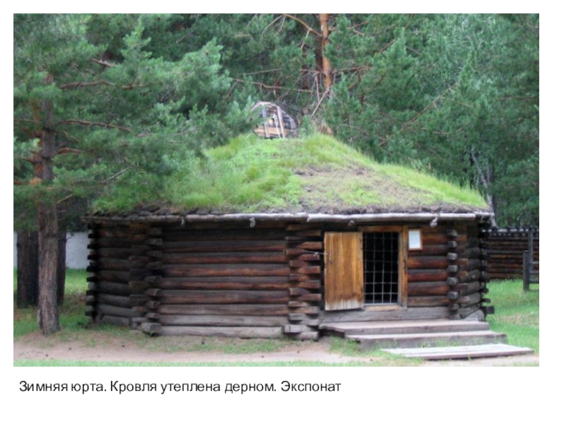 Слайд 57Зимняя юрта. Кровля утеплена дерном. Экспонат