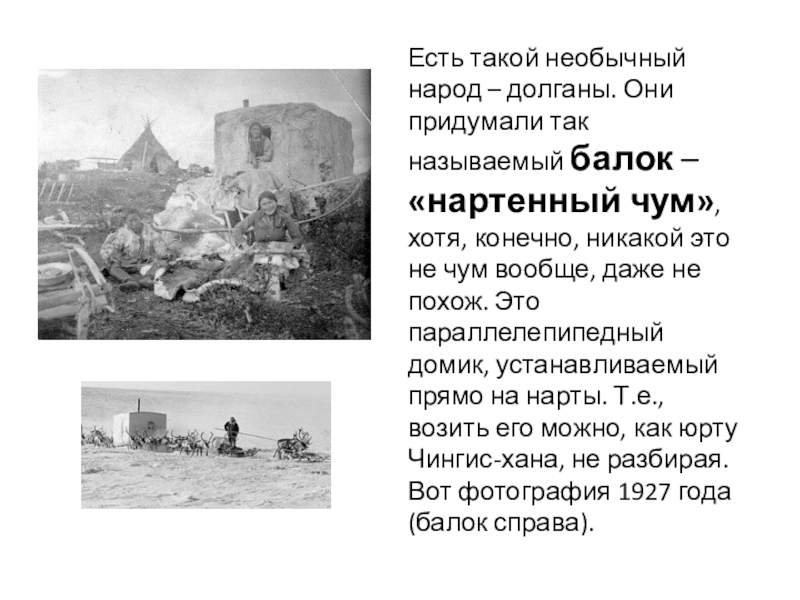 Слайд 17Есть такой необычный народ – долганы. Они придумали так называемый балок – «нартенный