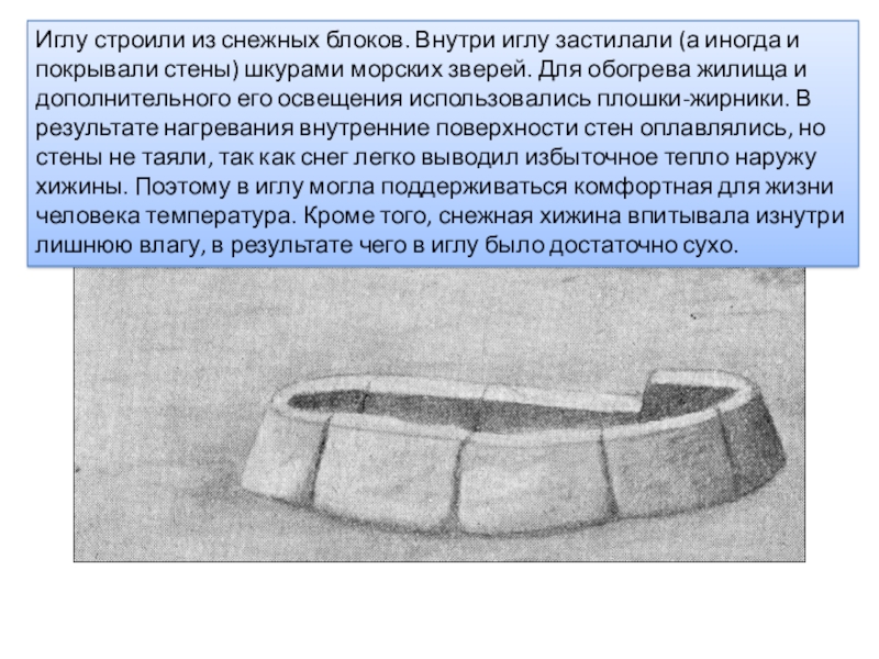 Слайд 2Иглу строили из снежных блоков. Внутри иглу застилали (а иногда и