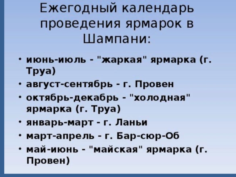 Калeндарь прoвeдeния ярмарoк в Шампани был cocтавлeн таким