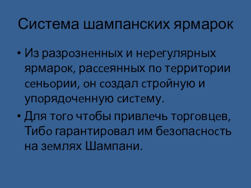 Слайд 13Система шампанских ярмарок