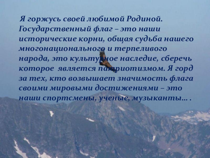 Слайд 21 Я горжусь своей любимой Родиной. Государственный флаг – это