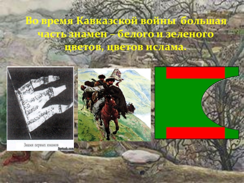 Слайд 15 Во время Кавказской войны большая часть знамен – белого