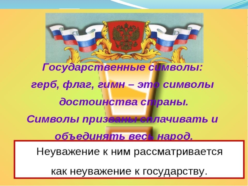 Федерации. Каждое современное государство имеет символы своего суверенитета- главные отличительные знаки. Они существуют в триединстве: