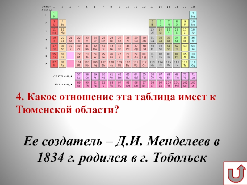 Д.И. Менделеев в 1834 г. родился в г. Тобольск