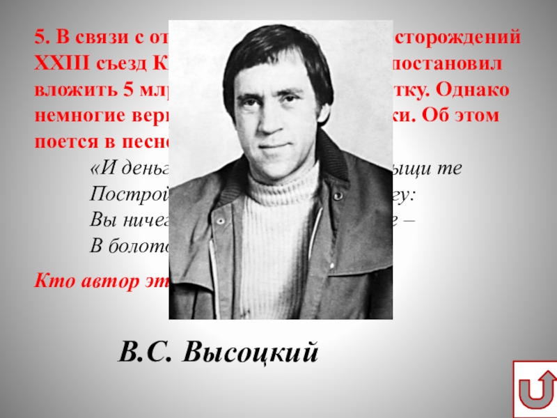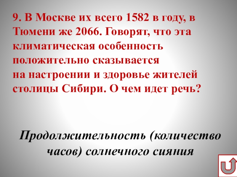Возврат на панель вопросов осуществляется нажатием управляющей кнопки в правом нижнем углу слайда.