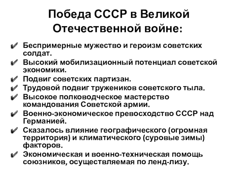 Победа СССР в Великой Отечественной войне: