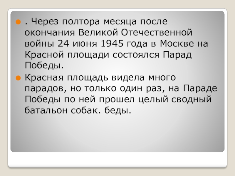 Слайд 3. Через полтора месяца после окончания Великой Отечественной войны 24 июня
