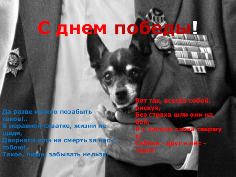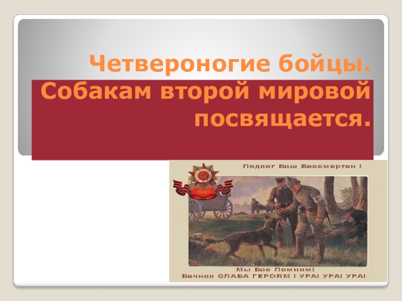 Слайд 1Четвероногие бойцы. Собакам второй мировой посвящается.