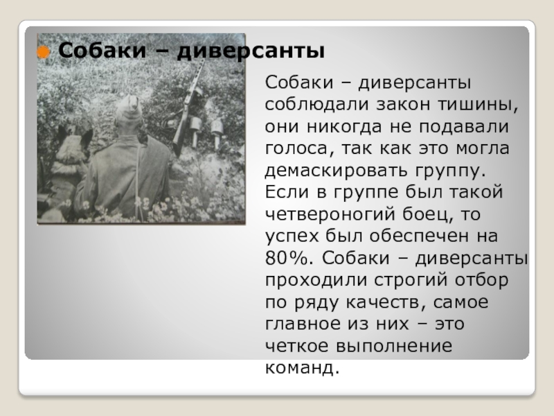 Собаки – диверсанты соблюдали закон тишины, они никогда не