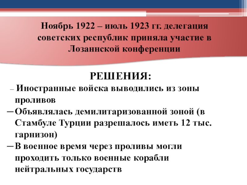 Объявлялась демилитаризованной зоной (в Стамбуле Турции разрешалось иметь 12 тыс. гарнизон)