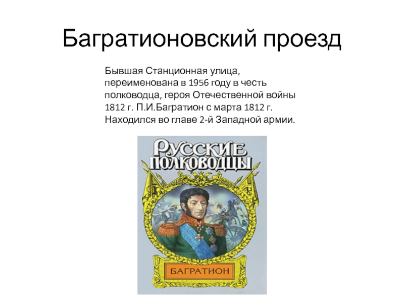 героя Отечественной войны 1812 г. П.И.Багратион с марта 1812 г. Находился во главе 2-й Западной армии.