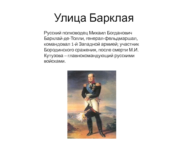 участник Бородинского сражения, после смерти М.И.Кутузова – главнокомандующий русскими войсками.