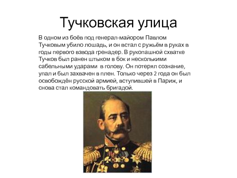 В одном из боёв под генерал-майором Павлом Тучковым убило лошадь,