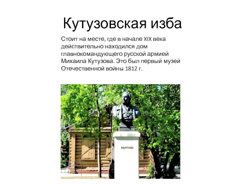 дом главнокомандующего русской армией Михаила Кутузова. Это был первый музей Отечественной войны 1812 г.