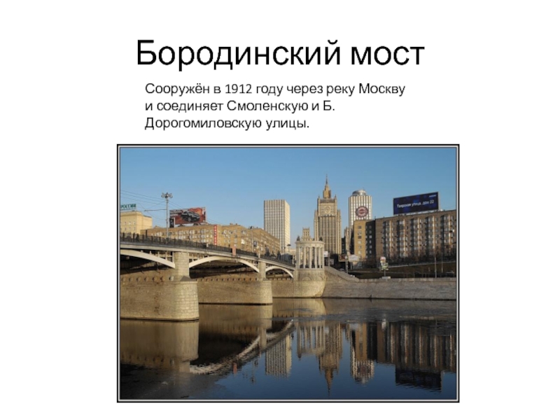 Сооружён в 1912 году через реку Москву и соединяет Смоленскую