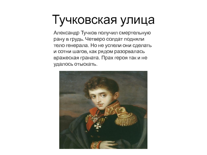 Александр Тучков получил смертельную рану в грудь. Четверо солдат подняли