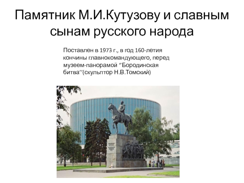 Слайд 25Памятник М.И.Кутузову и славным сынам русского народа