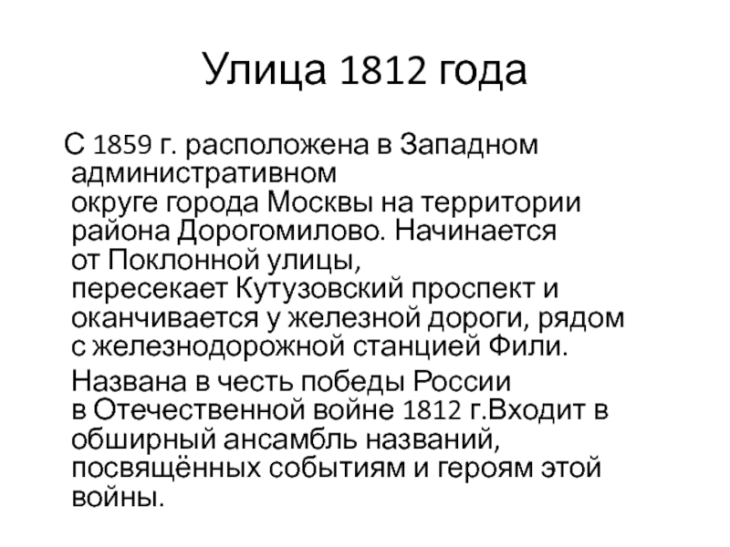 К 150-летию Отечественной войны 1812 г.(1962)бывшее Филёвское шоссе и вновь