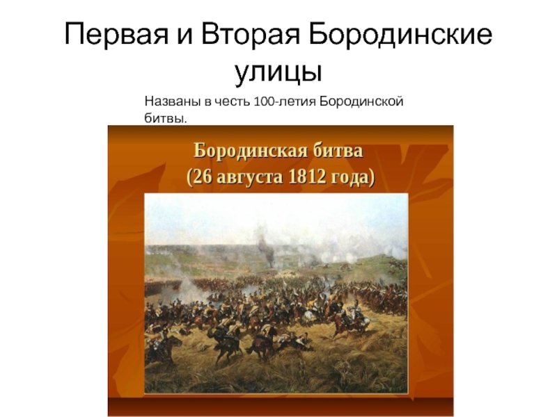 Названа в честь победы России в Отечественной войне 1812 г.Входит в обширный ансамбль названий, посвящённых событиям и героям этой войны.