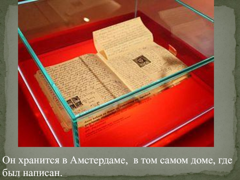 Слайд 5Он хранится в Амстердаме, в том самом доме, где был написан.