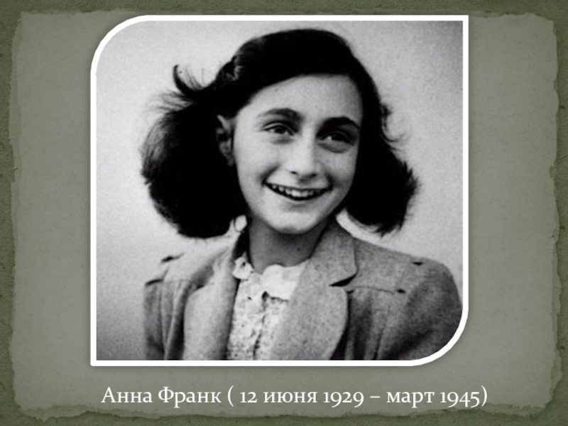 Слайд 2Анна Франк ( 12 июня 1929 – март 1945)