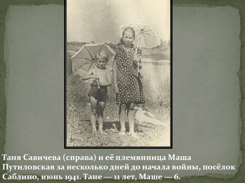 Слайд 8Таня Савичева (справа) и её племянница Маша Путиловская за несколько дней