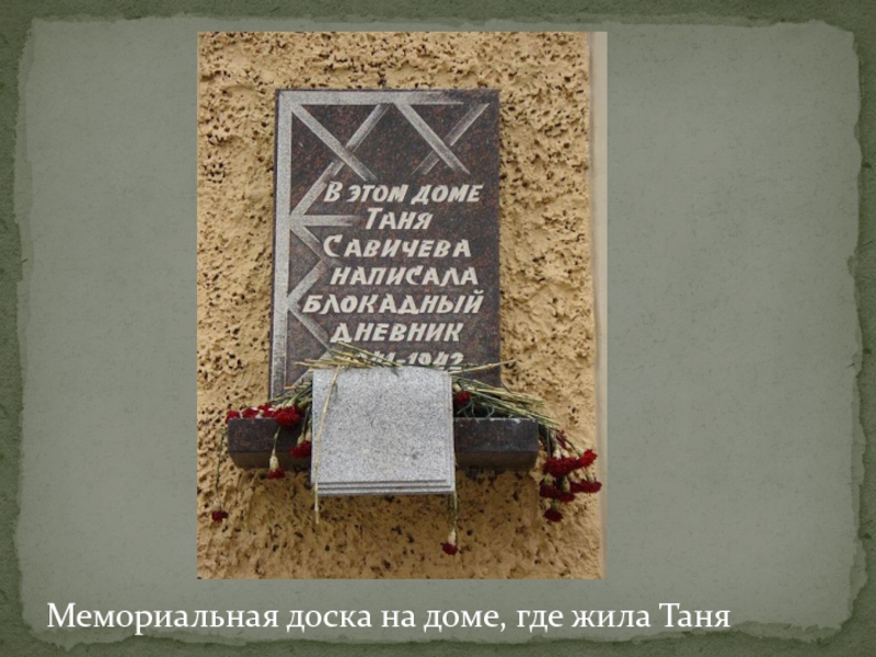 Слайд 12Мемориальная доска на доме, где жила Таня