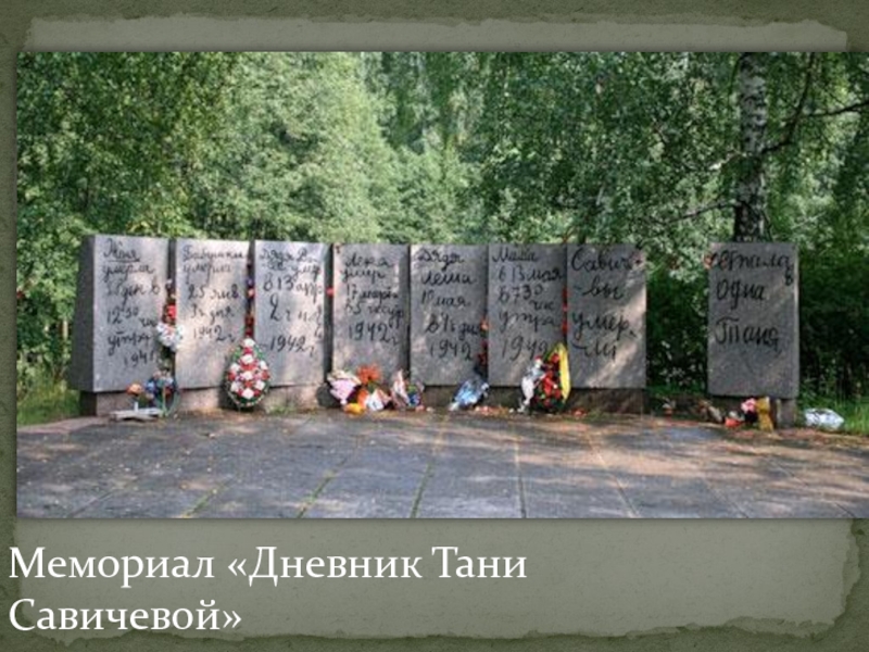 Слайд 11Мемориал «Дневник Тани Савичевой»