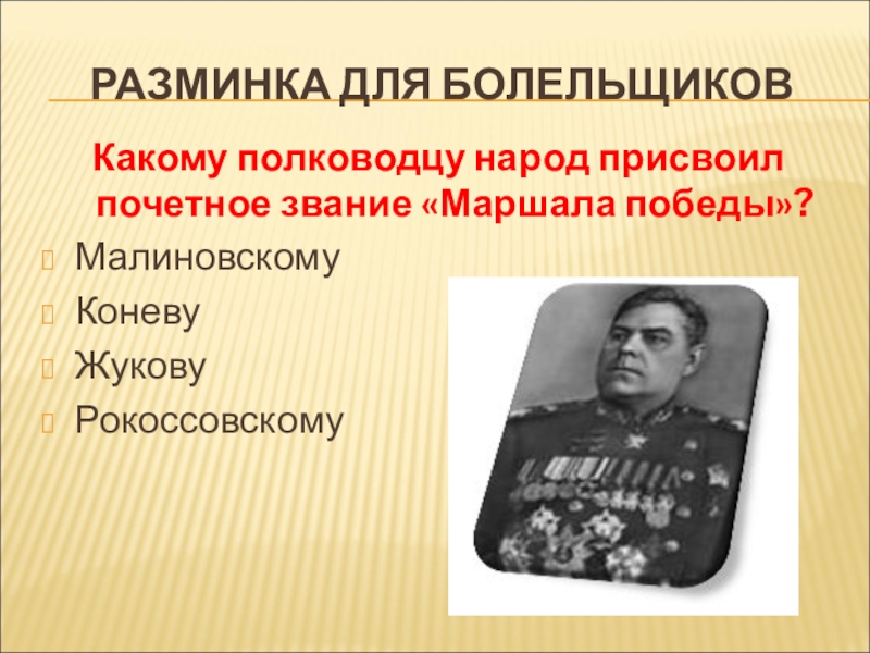 Какому полководцу народ присвоил почетное звание «Маршала победы»?