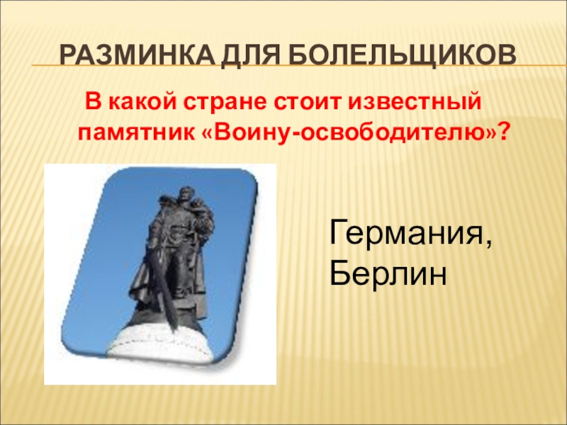 В какой стране стоит известный памятник «Воину-освободителю»?