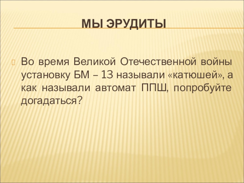 «катюшей», а как называли автомат ППШ, попробуйте догадаться?