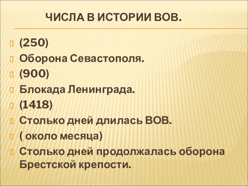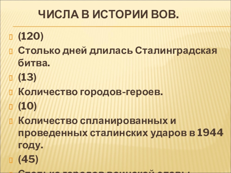 Слайд 29 ЧИСЛА В ИСТОРИИ ВОВ.
