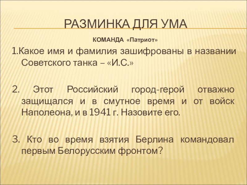 Слайд 3 РАЗМИНКА ДЛЯ УМА