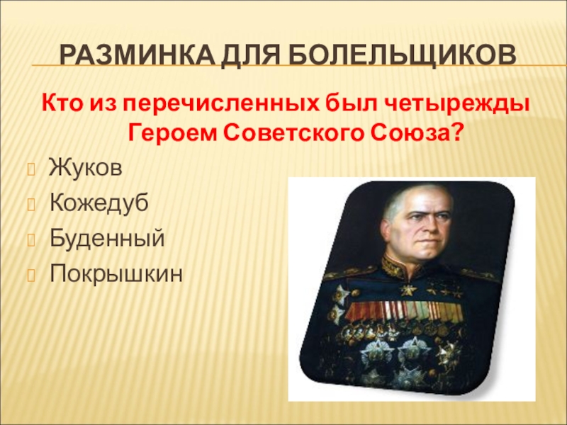 Кто из перечисленных был четырежды Героем Советского Союза?