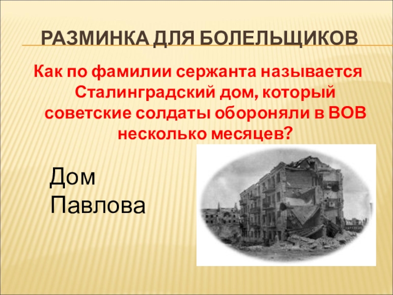 Как по фамилии сержанта называется Сталинградский дом, который советские