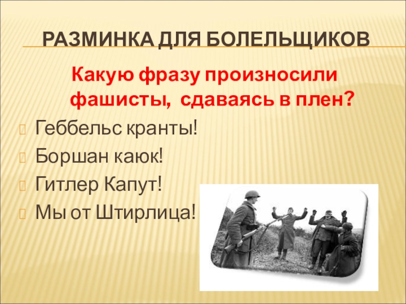 Какую фразу произносили фашисты, сдаваясь в плен?