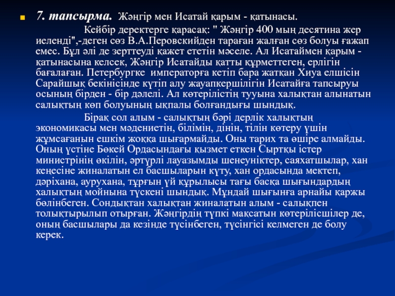 7. тапсырма. Жәңгір мен Исатай қарым - қатынасы.